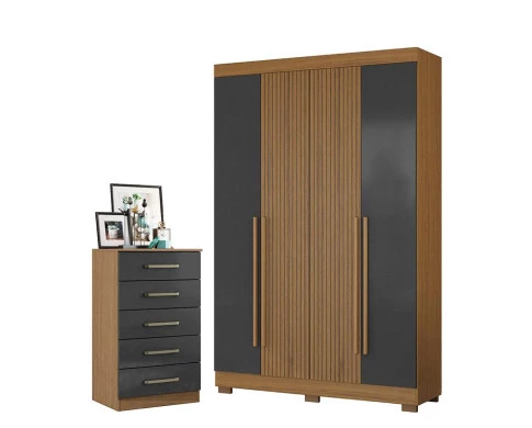Cômoda 2014140 e Guarda Roupa Solteiro 2030240 Atacama Grafite - Aramóveis