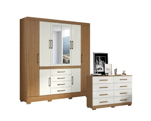 Cômoda 2014148 e Guarda Roupa Casal Nápole 2045149 Atacama Off White - Aramóveis