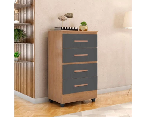 Cômoda Ambiente Lite 4 Gavetas Nature Cinza – Móveis Leão