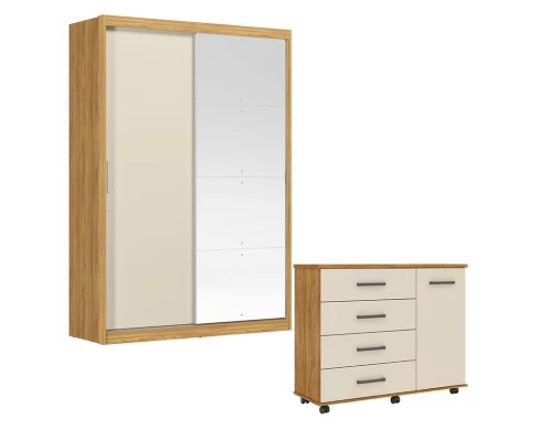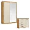 Cômoda Flora e Guarda Roupa Casal Riva 22515K com Espelho Cinamon Touch Off White Flex - Demóbile
