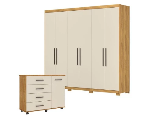 Cômoda Flora e Guarda Roupa Casal Venice 62780PE Cinamon Touch Off White com Pés - Demóbile