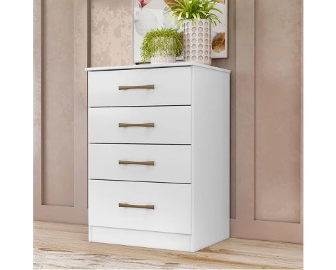 Está montando seu quarto? Apresentamos para você esta bela cômoda da linha MS913. Contando com quatro gavetas espaçosas, equipadas com corrediças metálicas que garantem um deslizamento suave. O destaque fica por conta da última gaveta com tamanho maior, perfeita para acomodar seus itens maiores. Os puxadores na cor bronze dão um toque de requinte. Fabricado pela Moval, é desenvolvido em MDP de alta qualidade. Sendo a combinação perfeita para compor seu quarto com praticidade e sofisticação, aproveitem!
