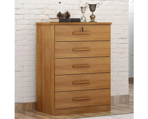 Esta precisando de uma cômoda? Apresentamos a linha Suiça, uma cômoda com 5 gavetas sendo uma delas equipada com chave para garantir mais segurança aos seus pertences. Fabricada em MDP/MDF garantindo qualidade e resistência. Seus puxadores amadeirados agregam charme e sofisticação, tornando-a uma peça versátil para complementar a decoração do seu quarto com estilo e praticidade. Venha aproveitar e garantir já o seu!