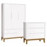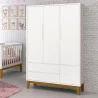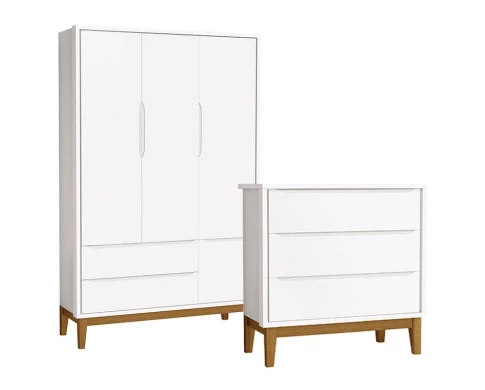Cômoda Gaveteiro com Guarda Roupa Infantil 3 Portas New Classic Branco com Pés Madeira - Reller