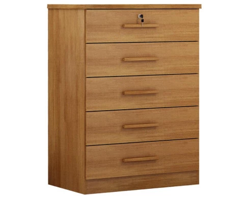 Esta precisando de uma cômoda? Apresentamos a linha Suiça, uma cômoda com 5 gavetas sendo uma delas equipada com chave para garantir mais segurança aos seus pertences. Fabricada em MDP/MDF garantindo qualidade e resistência. Seus puxadores amadeirados agregam charme e sofisticação, tornando-a uma peça versátil para complementar a decoração do seu quarto com estilo e praticidade. Venha aproveitar e garantir já o seu!
