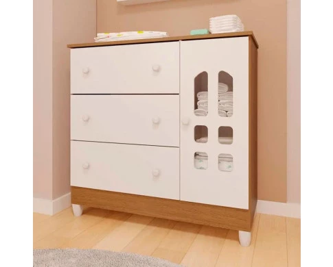 Cômoda Infantil New Selena Ambiente com Porta Branco Bétula – Carolina