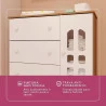 A Cômoda Infantil New Selena é o toque de charme e organização que o quartinho do seu bebê merece. Com um design delicado e acabamento impecável, ela combina beleza e praticidade, oferecendo amplo espaço para guardar roupinhas, acessórios e outros itens essenciais do dia a dia. Sua porta lateral e gavetas espaçosas facilitam a rotina, enquanto o tom branco bétula traz leveza e suavidade ao ambiente, criando uma atmosfera tranquila e acolhedora. Pensada com todo cuidado, esta cômoda é a aliada perfeita para manter tudo sempre em ordem e deixar o espaço ainda mais especial. Confira as características técnicas e aproveite!