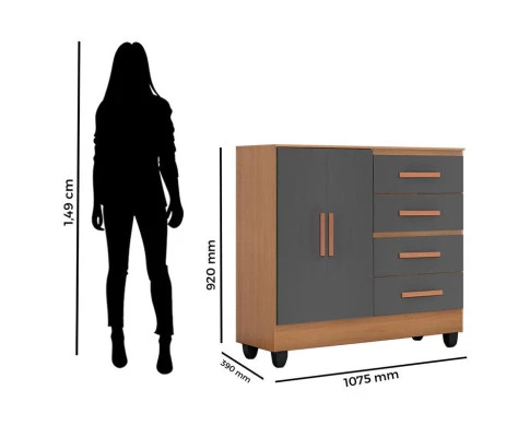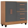 Cômoda Lite 4 Gavetas 2 Portas Nature Cinza – Móveis Leão