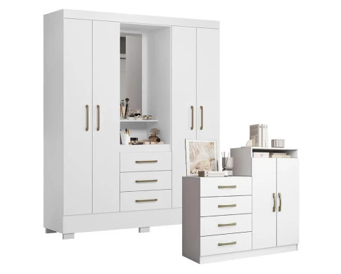 Cômoda Londres e Guarda Roupa Solteiro Paris 2045150 Branco - Aramóveis