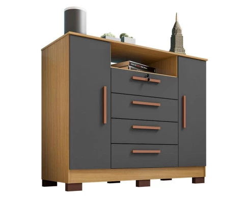 Cômoda Madri 4 Gavetas 2 Portas Carvalho Americano Grafite - Incorplac