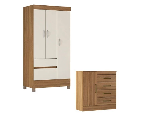 Cômoda Montevidéu e Guarda Roupa Solteiro Wind Amêndola Off White - Demóbile