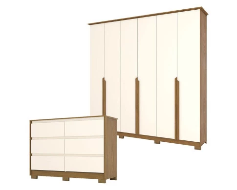 Cômoda Ravenna e Guarda Roupa Casal Andréas Nature Off White - Henn