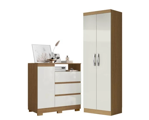 Cômoda Sapateira 2014143 e Armário Multiuso New 2000192 Atacama Off White - Aramóveis