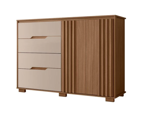 Começou a procurar móveis para seu quarto? Então apresentamos para você esta bela cômoda da linha Texas. Composta por duas portas com detalhes ripados adicionam um toque de requinte. Contando com quatro gavetas espaçosas equipadas com corrediças telescópicas, garante um deslizamento mais suave e seguro. Para completar, os pés em PVC garantem mais estabilidade e facilita na limpeza. Fabricado pela Moval, é desenvolvido em 100% MDP, sendo a escolha perfeita para quem deseja sofisticação e praticidade na organização quarto, aproveite!