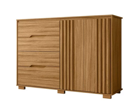 Começou a procurar móveis para seu quarto? Então apresentamos para você esta bela cômoda da linha Texas. Composta por duas portas com detalhes ripados adicionam um toque de requinte. Contando com quatro gavetas espaçosas equipadas com corrediças telescópicas, garante um deslizamento mais suave e seguro. Para completar, os pés em PVC garantem mais estabilidade e facilita na limpeza. Fabricado pela Moval, é desenvolvido em 100% MDP, sendo a escolha perfeita para quem deseja sofisticação e praticidade na organização quarto, aproveite!