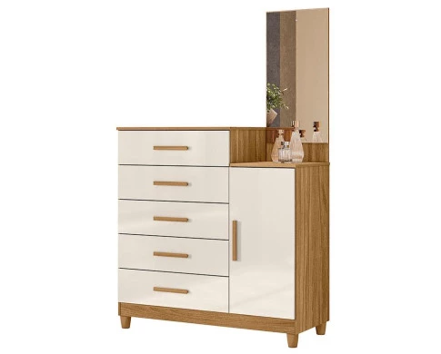 Começou a montar seu quarto? Então apresentamos para você esta bela cômoda da linha Lisboa. Contando com uma porta e cinco gavetas equipadas com corrediças metálicas, garante uma abertura suave. Os puxadores em MDF complementa o visual moderno, enquanto os pés em PVC proporcionam mais estabilidade e facilidade na hora da limpeza. O destaque é o painel com espelho agregando mais estilo e praticidade para o dia a dia. Fabricado pela Moval, é desenvolvido em MDP de qualidade, sendo a espelho ideal para quem está procurando organização, funcionalidade e um toque de sofisticação para compor o seu quarto, aproveite!