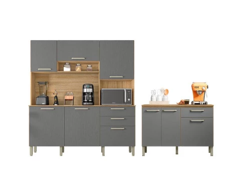 Cozinha Ferrara com Balcão de Cozinha Versalhes Freijó Gris – Kits Paraná