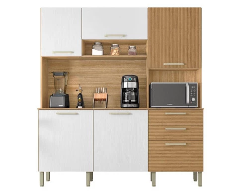 Cozinha Ferrara 6 Portas e 2 Gavetas Freijó Supremo Ripado - Kits Paraná