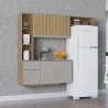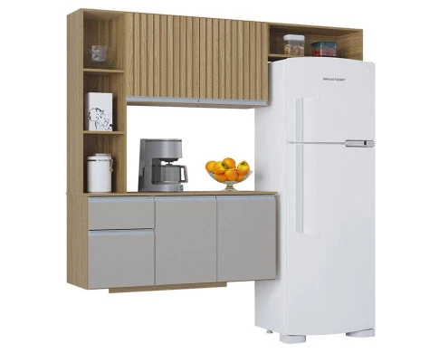Cozinha Suspensa com Balcão Mel 163 cm Damasco Ripado Off White– Poquema