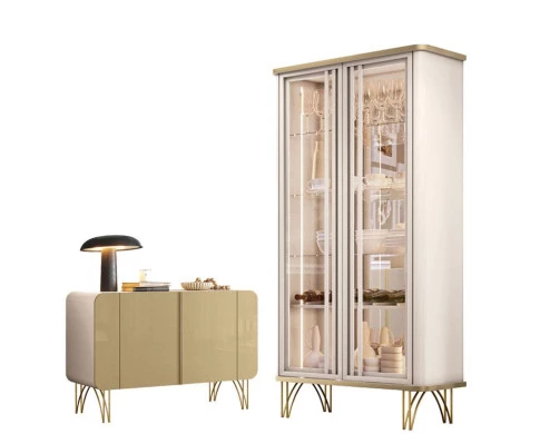 Cristaleira Évora com Buffet Benvenuto Champanhe Off White - HB Móveis