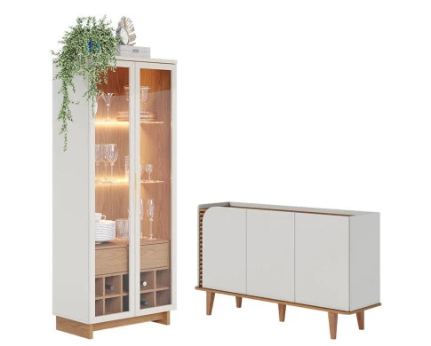 Cristaleira Guanabara Off White Freijó com Aparador Buffet Jurerê Off White Matte Freijó - Colibri