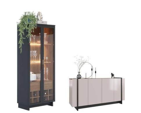 Cristaleira Guanabara Preto Acetinado Noce Milano com Aparador para Sala Buffet Copacabana Off White Nogueira Real Preto Acetinado – Colibri