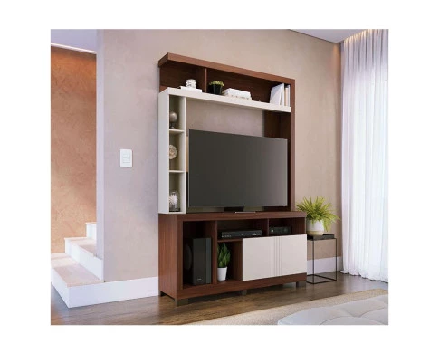 Estante Home Theater Ambiente Elba Nogueira Real Off White Matte - Colibri