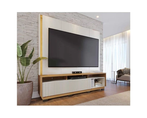 Estante Home Theater Ambiente Jordão Com Pés Off White Freijó - Colibri