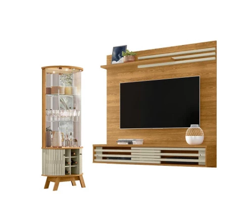 Estante Home Theater Bancada Frizz Sublime com Cristaleira Marina Cumaru Opala - Madetec