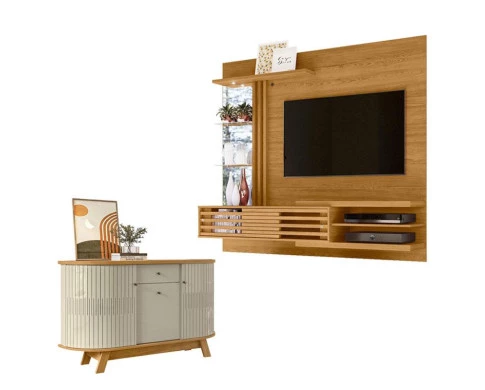 Estante Home Theater Bancada Suspensa Frizz Supreme Cumaru com Aparador Buffet Monza Cumaru Opala - Madetec
