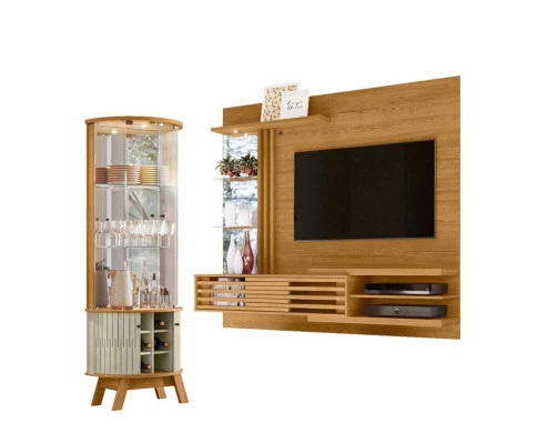 Estante Home Theater Bancada Suspensa Frizz Supreme Cumaru com Cristaleira Marina Cumaru Opala - Madetec