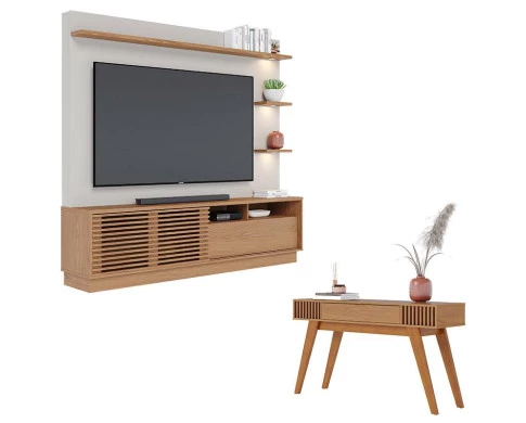 Estante Home Theater Campeche Freijó Off White Matte com Aparador Riviera Freijó – Colibri