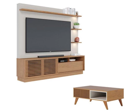 Estante Home Theater Campeche Freijó Off White Matte com Mesa de Centro Jeri Freijó Off White- Colibri