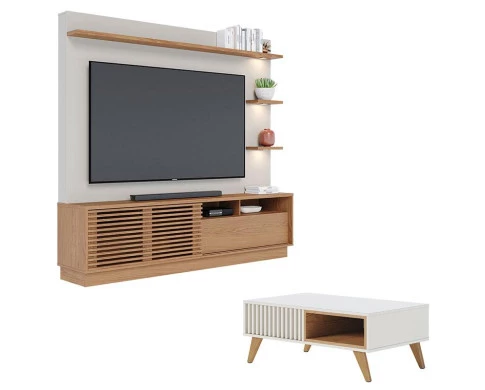 Estante Home Theater Campeche Freijó Off White Matte com Mesa de Centro Jeri Off White Freijó - Colibri