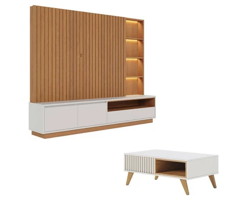 Estante Home Theater Cancún Freijó Off White Matte com Mesa de Centro Jeri Off White Freijó - Colibri