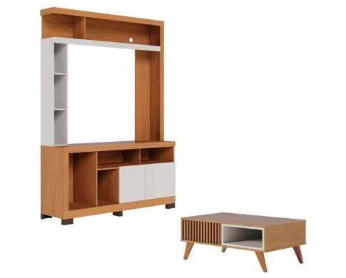 Estante Home Theater Elba Freijó Off White Matte e Mesa de Centro Jeri Freijó Off White - Colibri