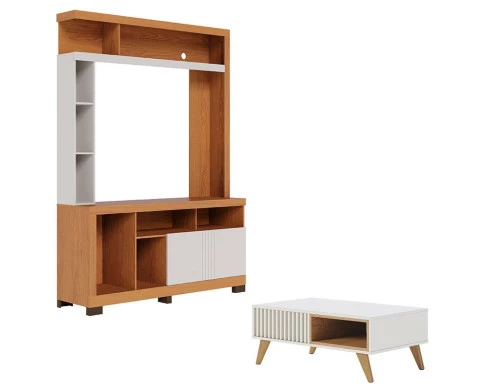 Estante Home Theater Elba Freijó Off White Matte e Mesa de Centro Jeri Off White Freijó - Colibri
