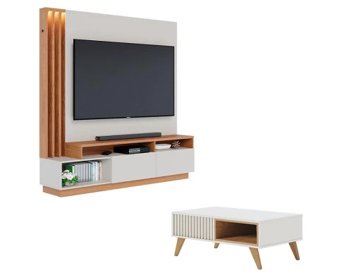 Estante Home Theater Humaitá Off White Matte Freijó com Mesa de Centro Jeri Off White Freijó - Colibri