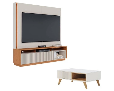 Estante Home Theater Jordão Off White Freijó com Mesa de Centro Jeri Off White Freijó - Colibri