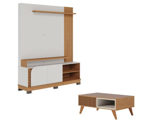 Estante Home Theater Jurerê 1.5 Off White Matte Freijó com Mesa de Centro Jeri Freijó Off White - Colibri