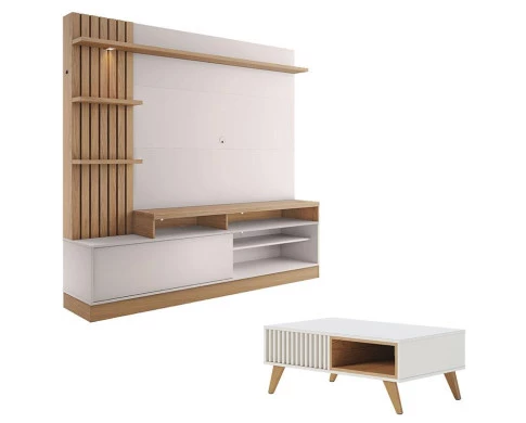 Estante Home Theater Maceió Freijó Off White com Mesa de Centro Jeri Off White Freijó - Colibri