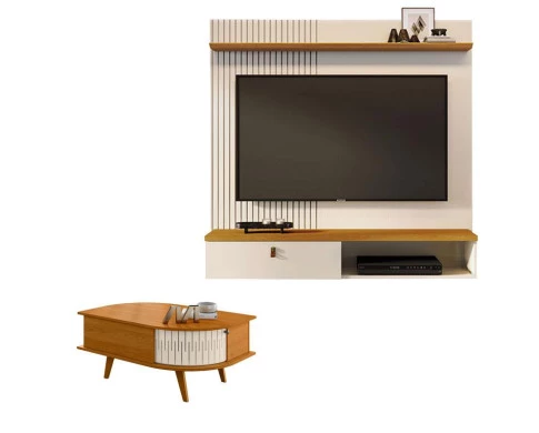 Estante Home Theater Suspenso Íris com Mesa de Centro Indianápolis Cinamomo Off White – Madetec
