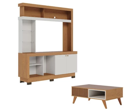 Estante Home Theater Valença Freijó Off White com Mesa de Centro Jeri Freijó Off White - Colibri