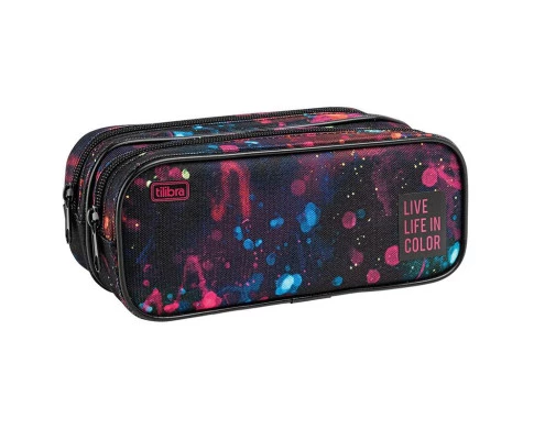 Estojo Escolar Infantil Duplo Académie Splashes Preto - Tilibra