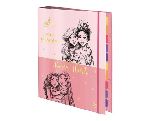 Estudar fica muito mais encantador com o Fichário Caderno Argolado Colegial Princesas da DAC! Com design moderno, possui 48 folhas pautadas e decoradas, capa dura e elástico para fechamento, não perca mais tempo para organizar suas anotações com facilidade, aproveite!