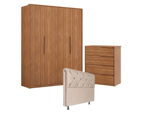Guarda Roupa Attore 4 Portas e Cômoda Atria Amêndola com Cabeceira Daiana 160 cm Marfim – Demartêz