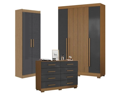 Guarda Roupa Casal 2030240 com Armário Multiuso 2000191 e Cômoda 2014148 Atacama Grafite - Aramóveis