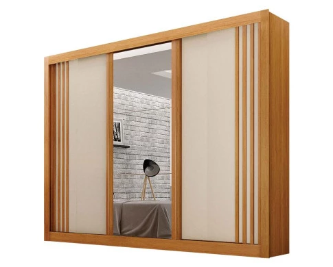 Guarda Roupa Casal 3 Portas com Espelho Milano Cinamomo Off White – Leifer Móveis
