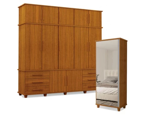Guarda Roupa Casal 5 portas e Armário Multiuso Londres Freijó – Luapa Móveis