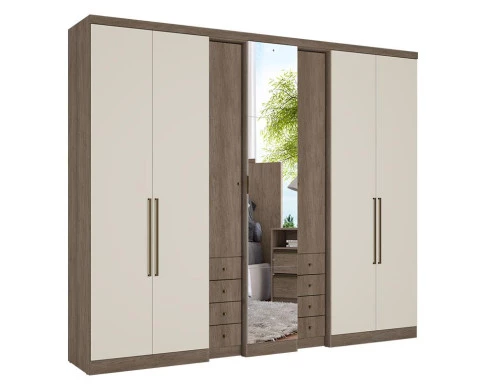 Guarda Roupa Casal Absolut Clear Glass 7 Portas Rustic Off White Acetinado - THB